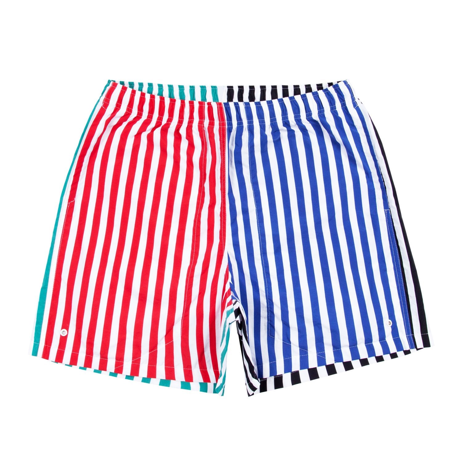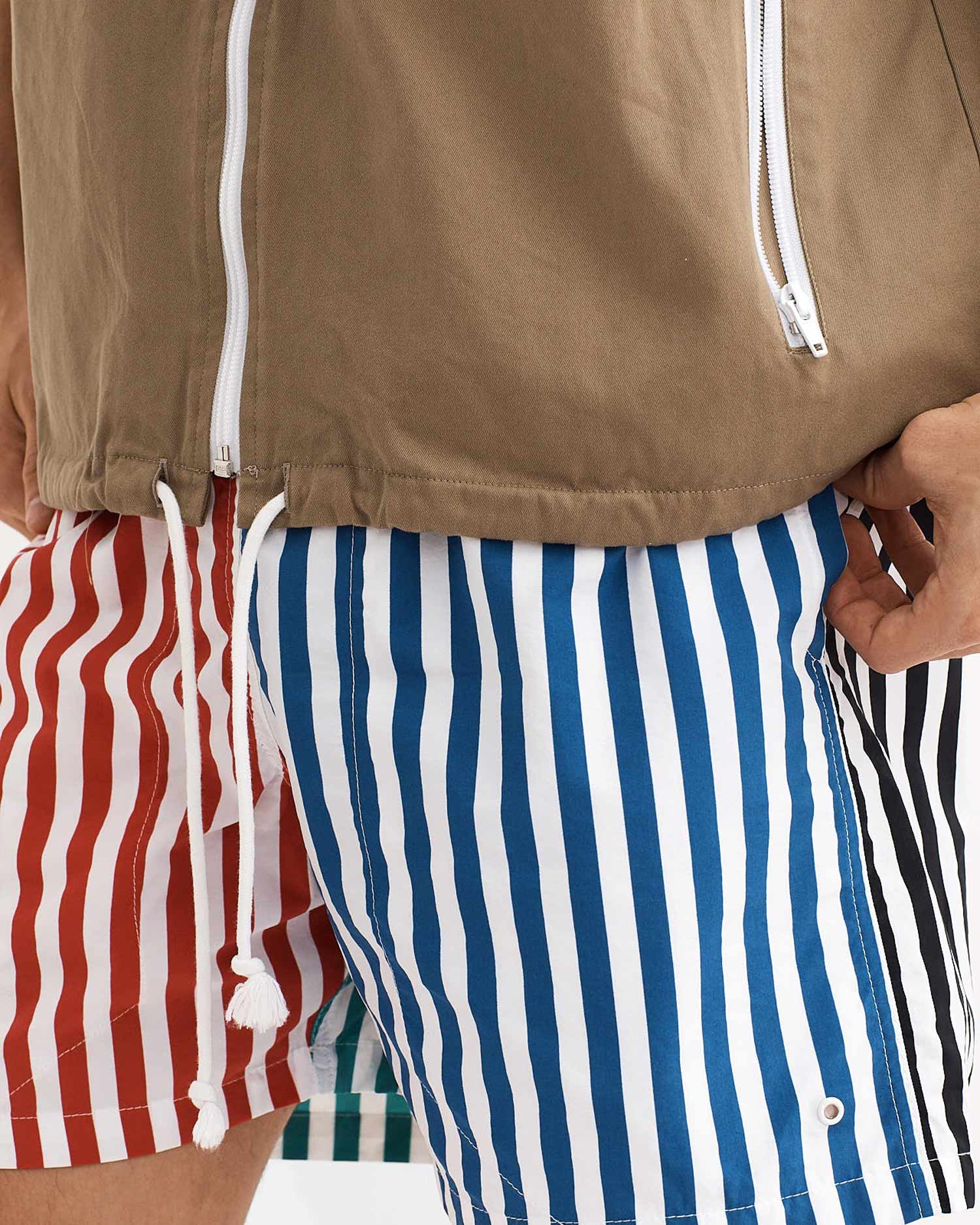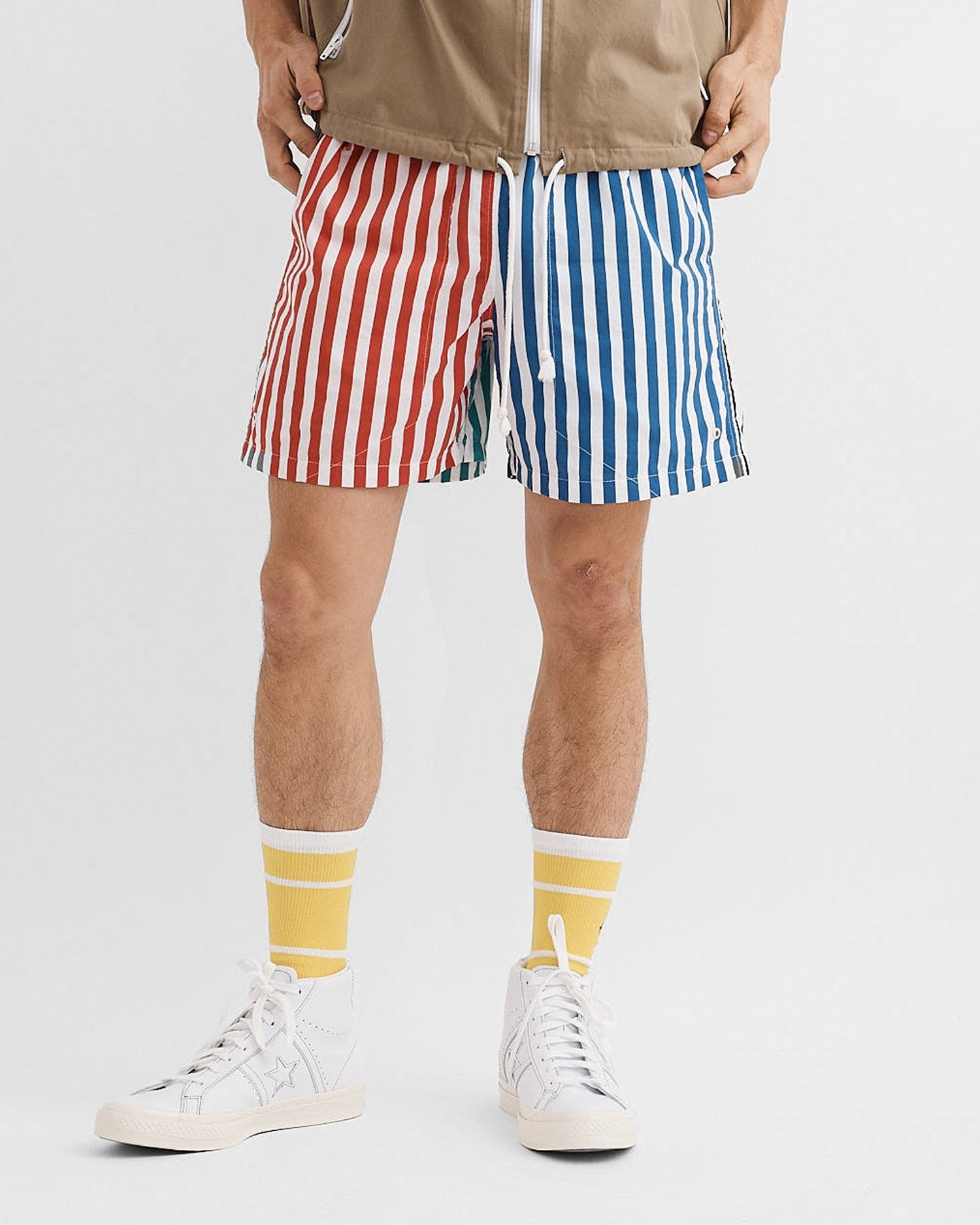 Made in Italy. 100% nylon with poly mesh liner. Elastic drawstring waist, on-seam front pockets, back patch pocket with drain vents and woven label.
