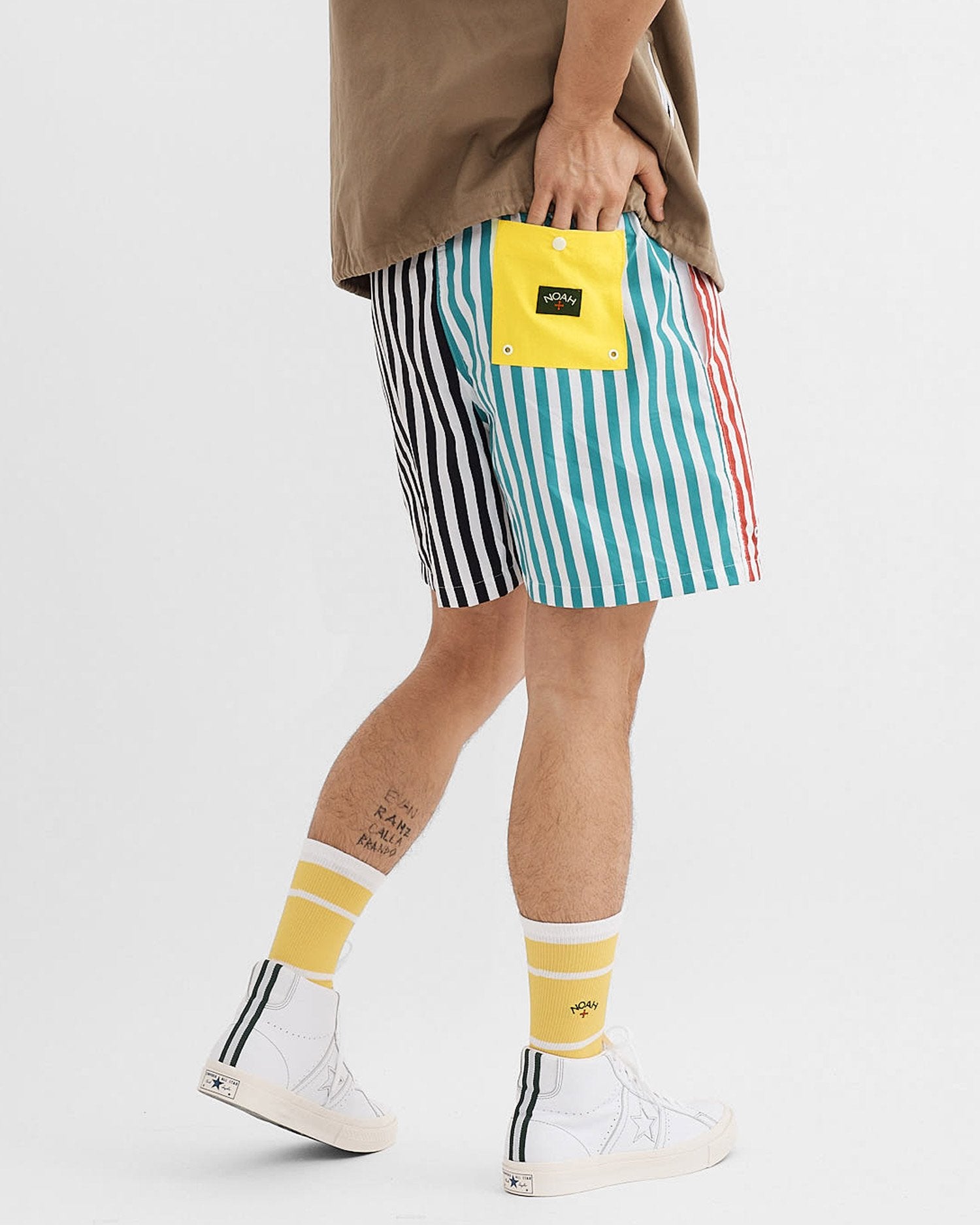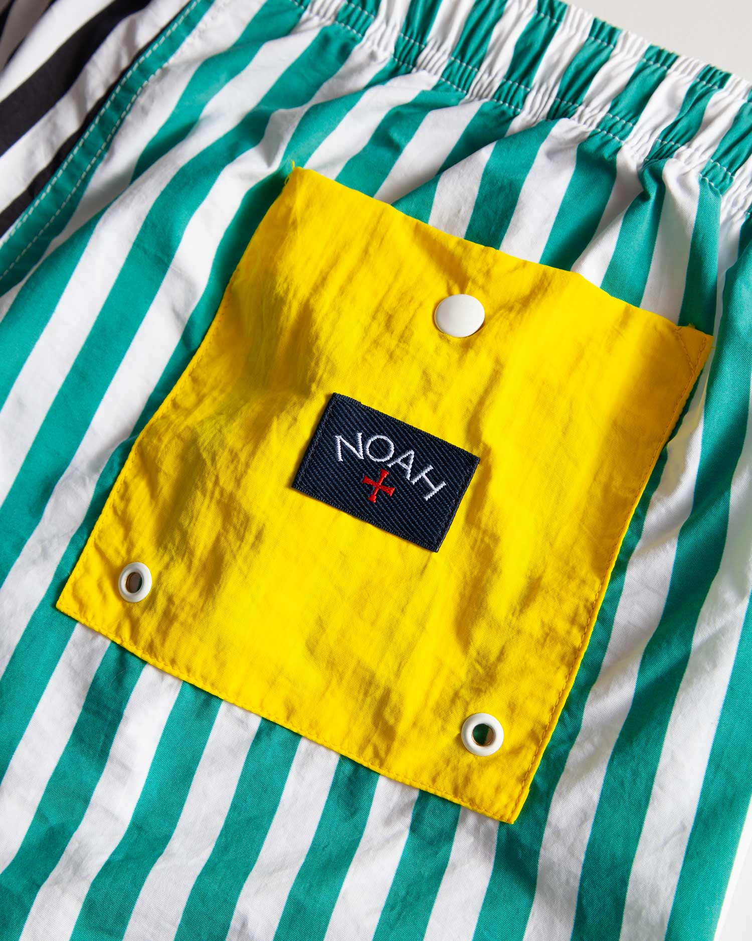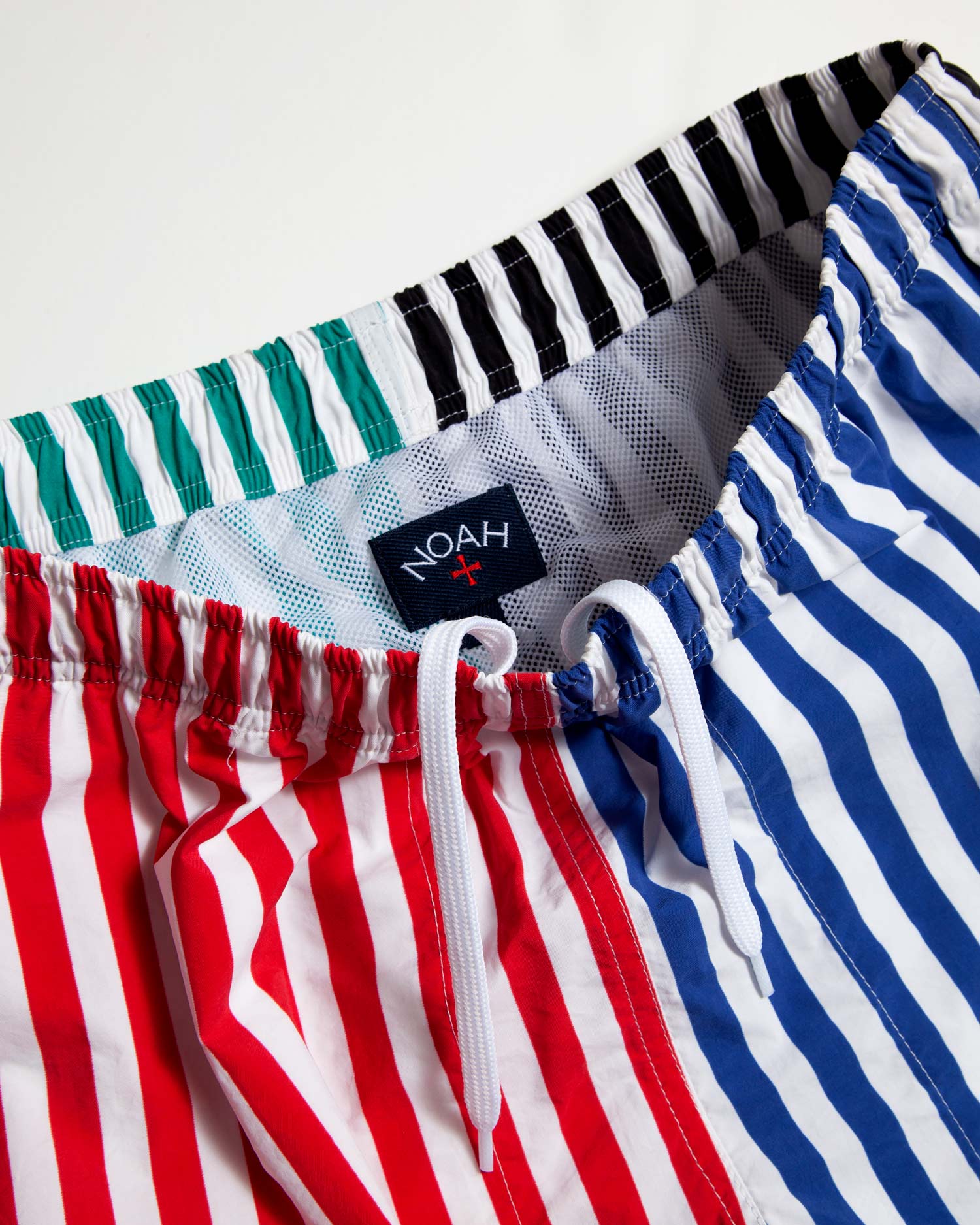 Made in Italy. 100% nylon with poly mesh liner. Elastic drawstring waist, on-seam front pockets, back patch pocket with drain vents and woven label.
