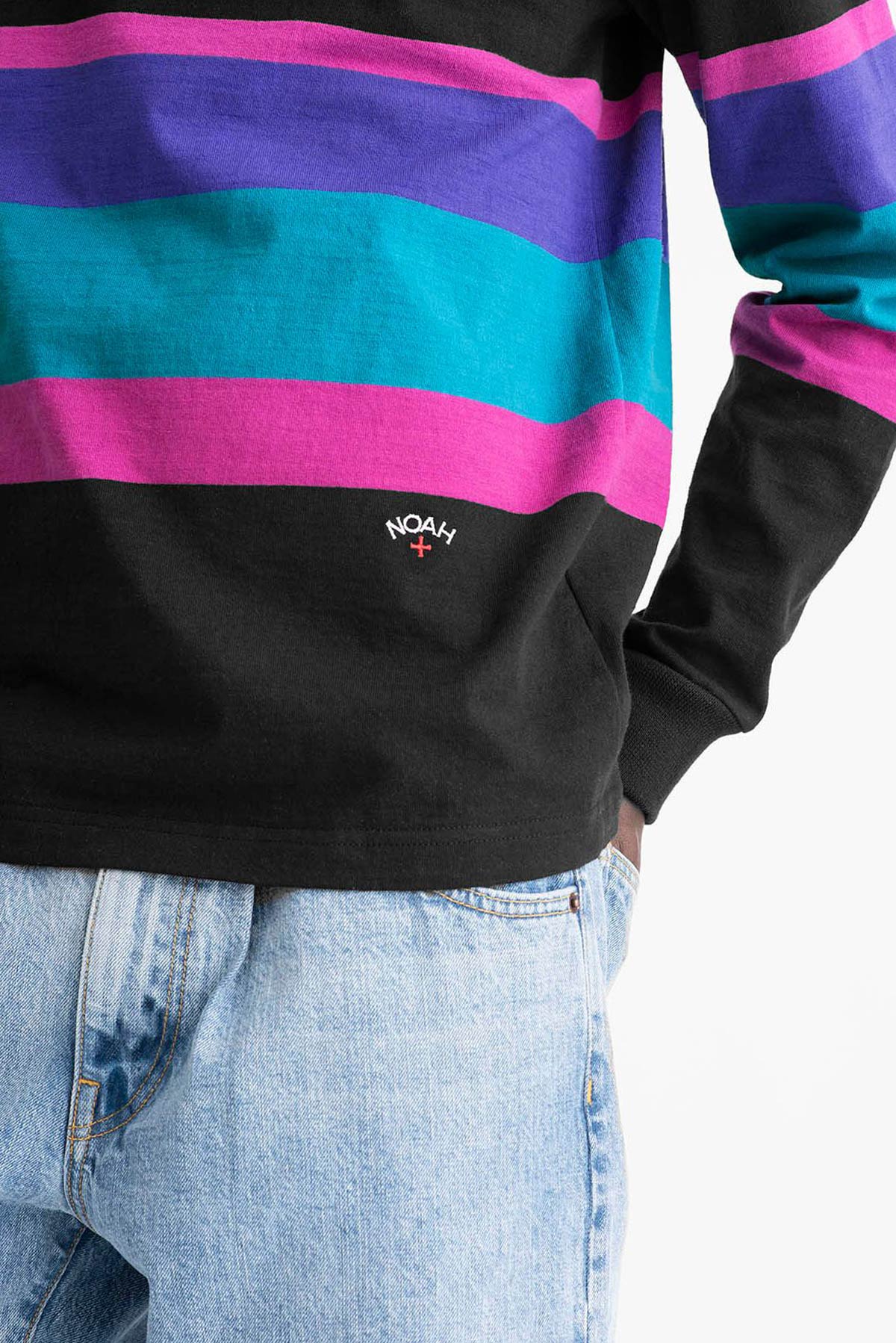Made in Canada. 100% cotton, 8 oz Practice Cloth. Engineered stripes. Embroidered logo on lower front.