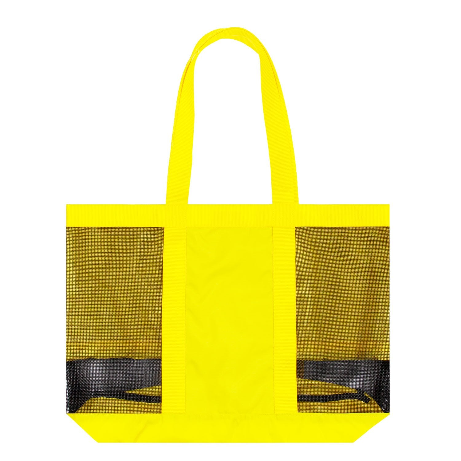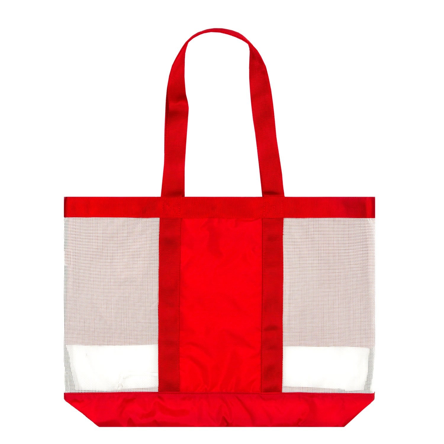 Mesh is an advantageous material for beach bags of all styles and sizes, since it lets sand out and air in. Swim trunks or wetsuits get a chance to dry out rather than staying damp inside a closed bag.