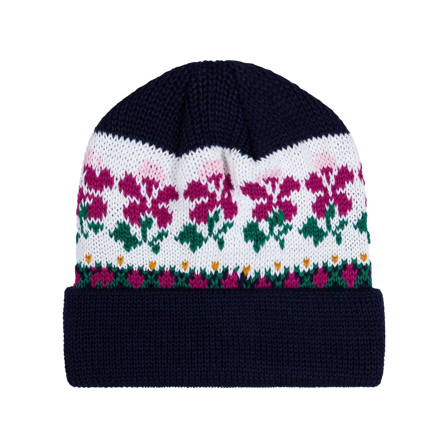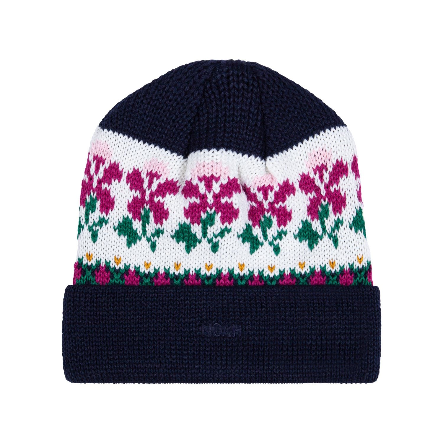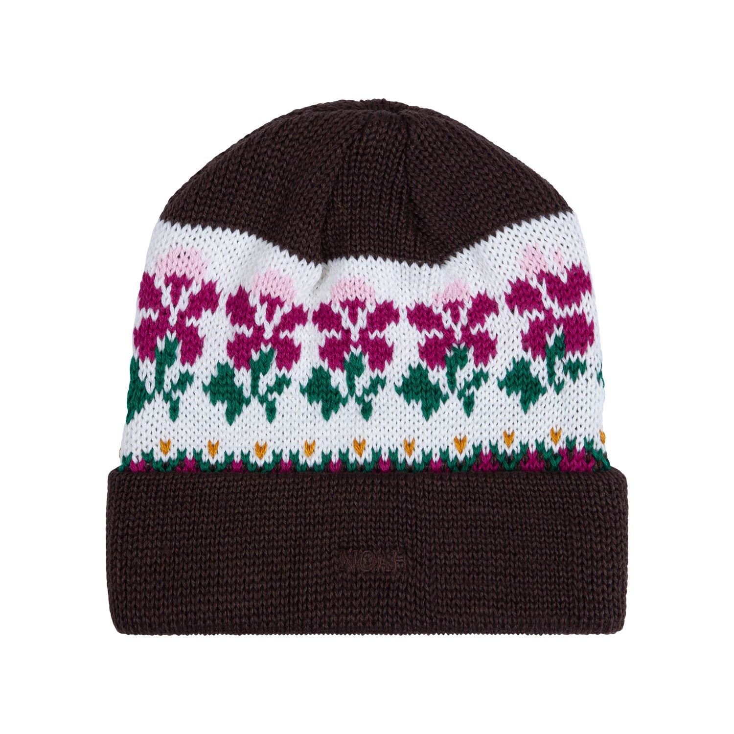 Made in Canada. 50% wool, 50% acrylic jacquard knit. Tonal embroidered logo on front.