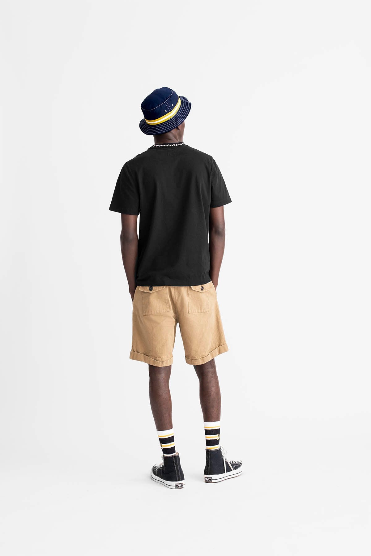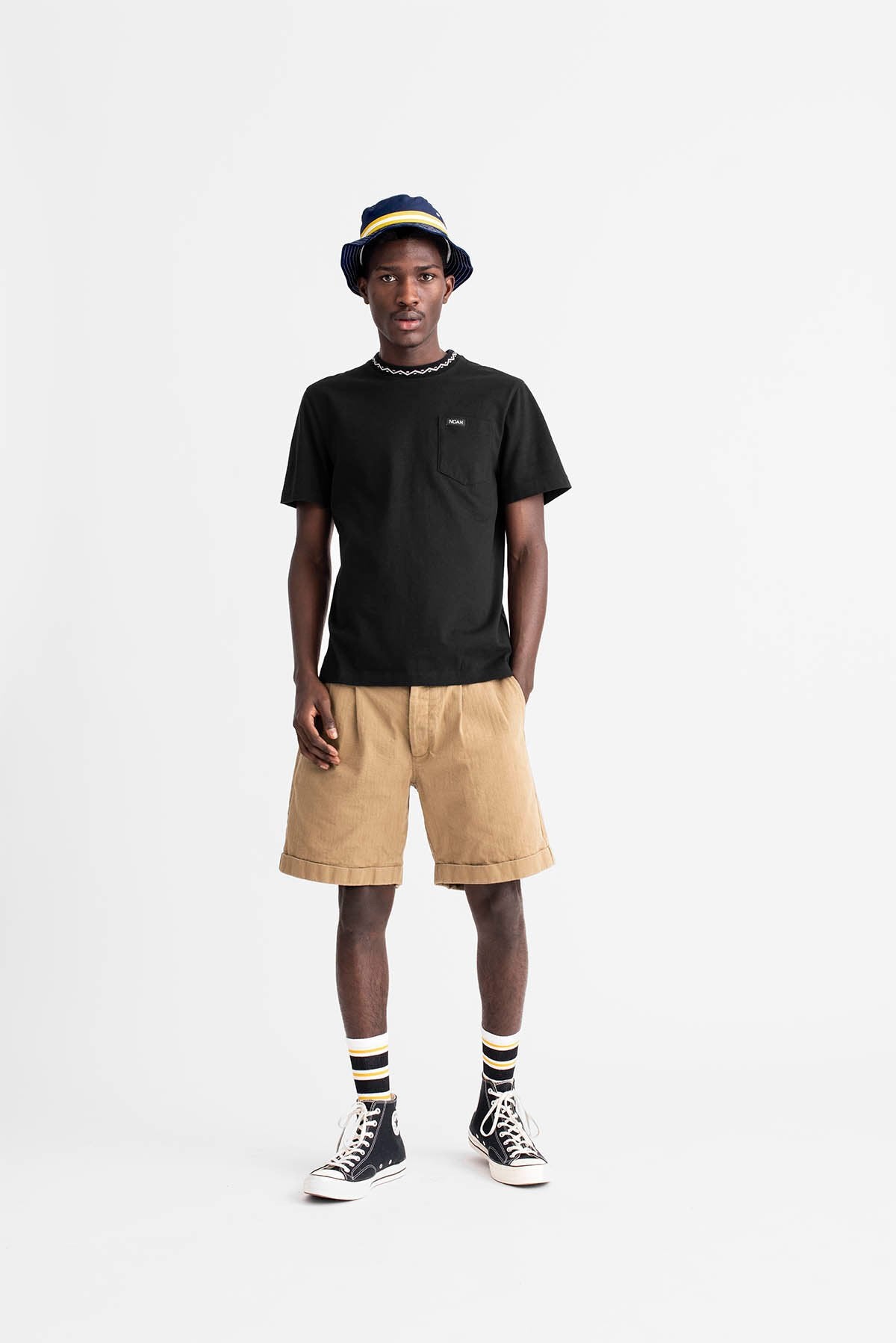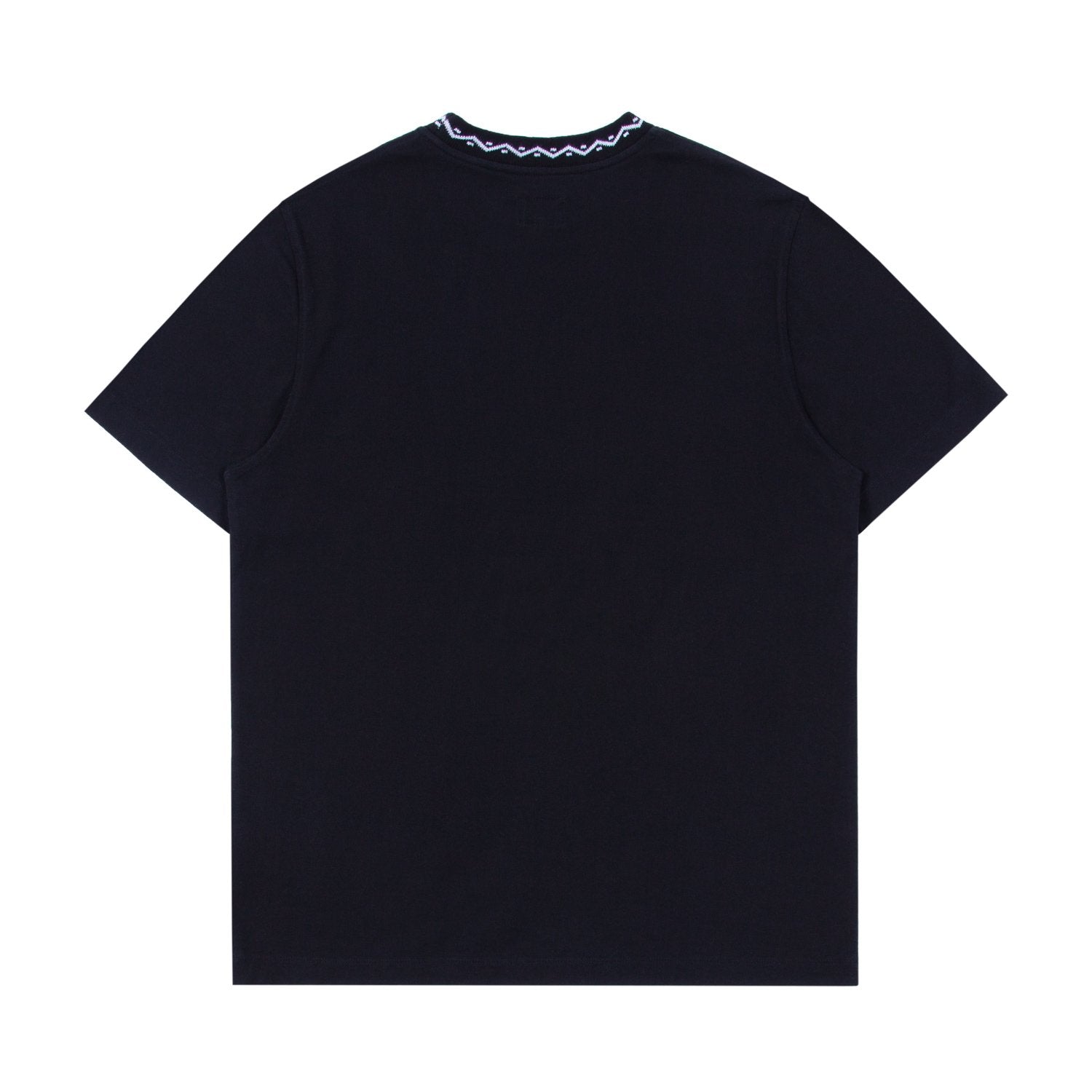 Made in Portugal. 100% cotton. Rib knit collar with jacquard pattern. Woven label on pocket.