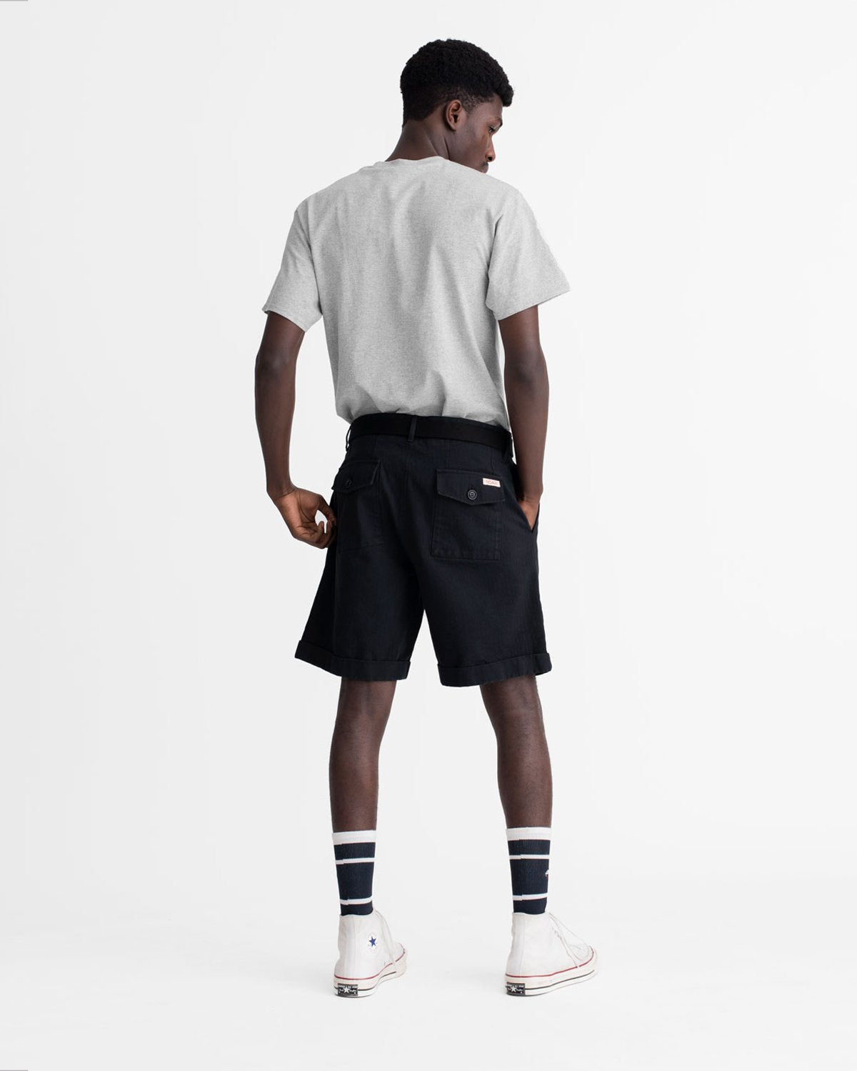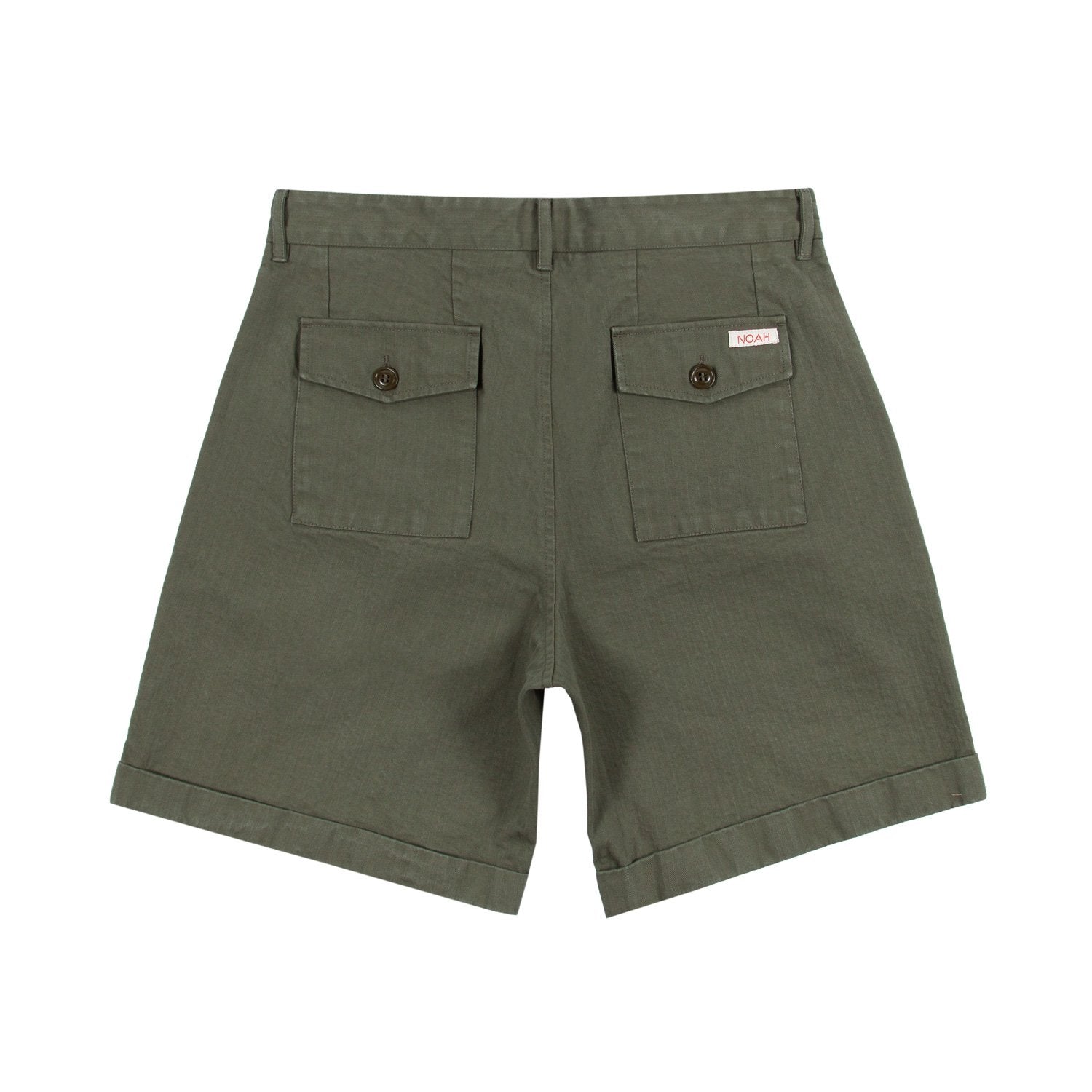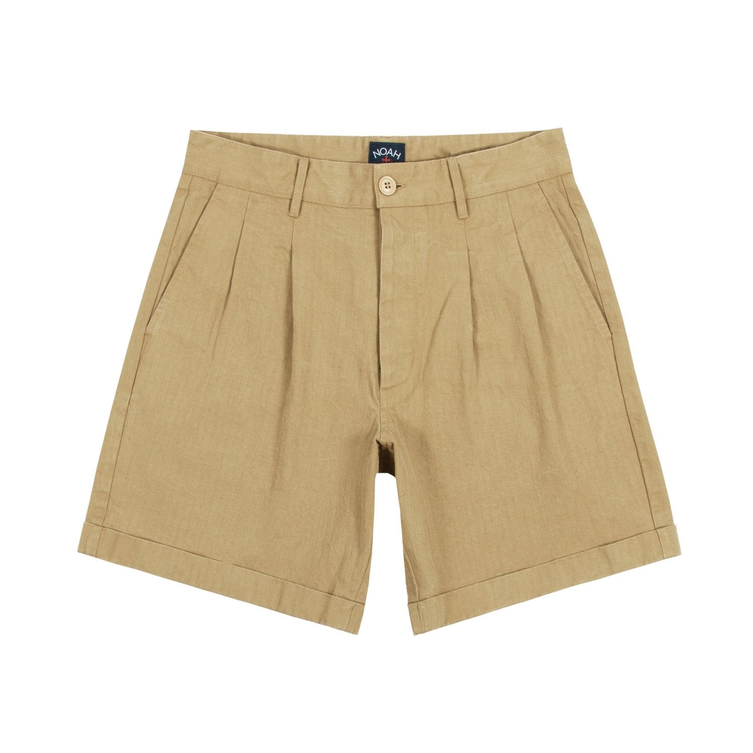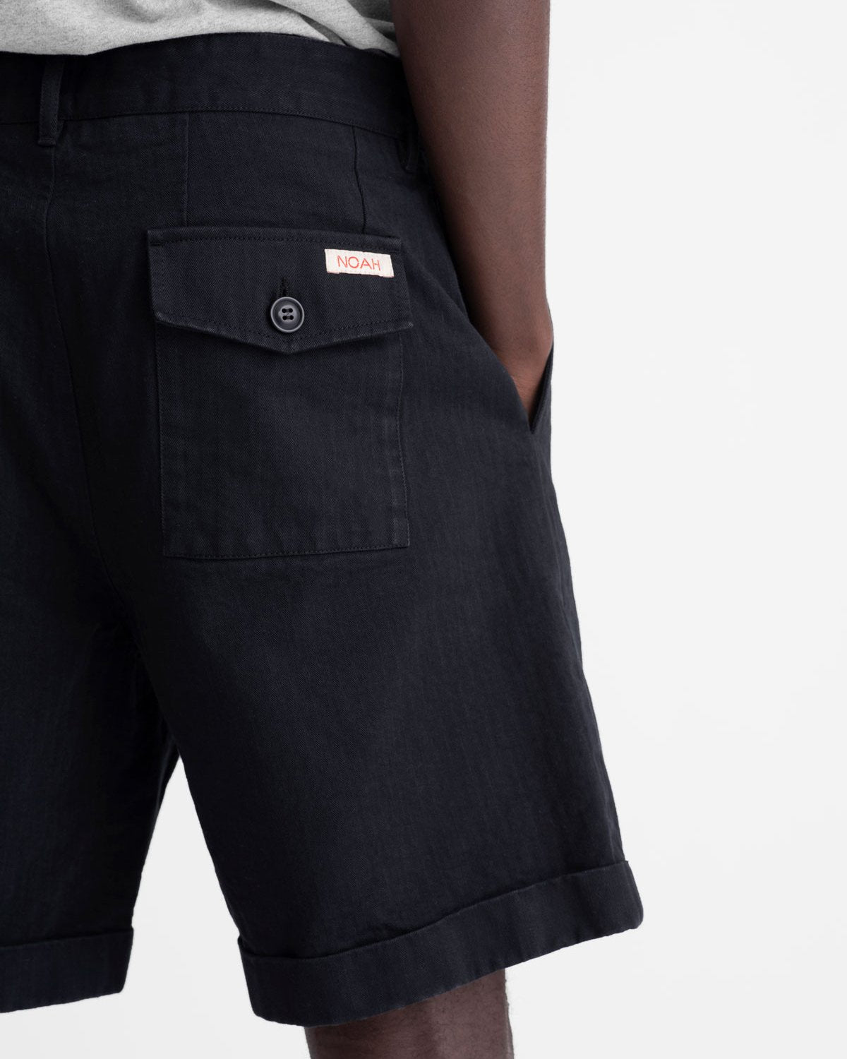 Made in Italy. 100% cotton, herringbone twill. Double-pleat front with cuffed hem, button fly, and button closure. Slash front pockets, flap back pockets with button closures. Woven label on back pocket.