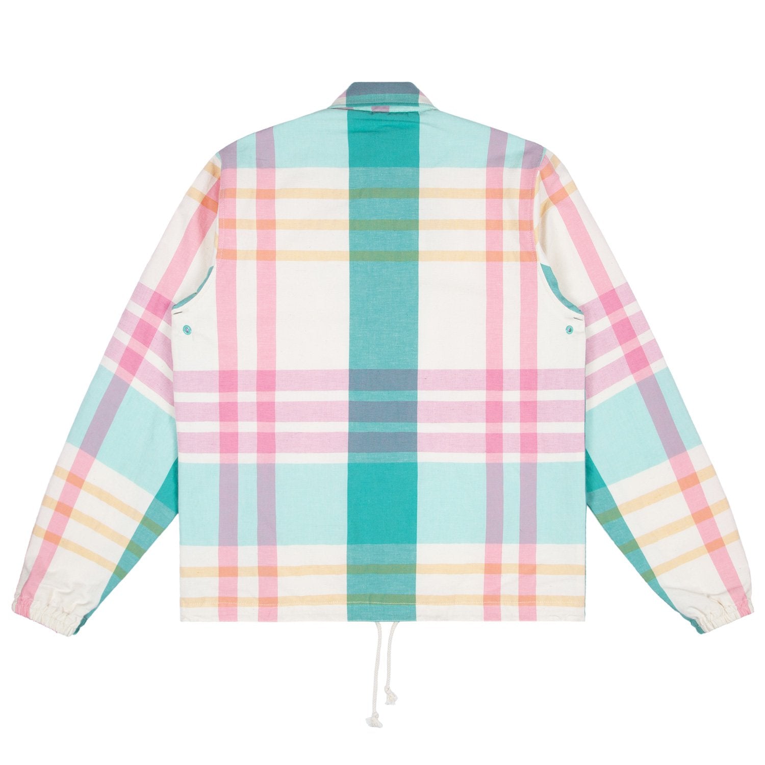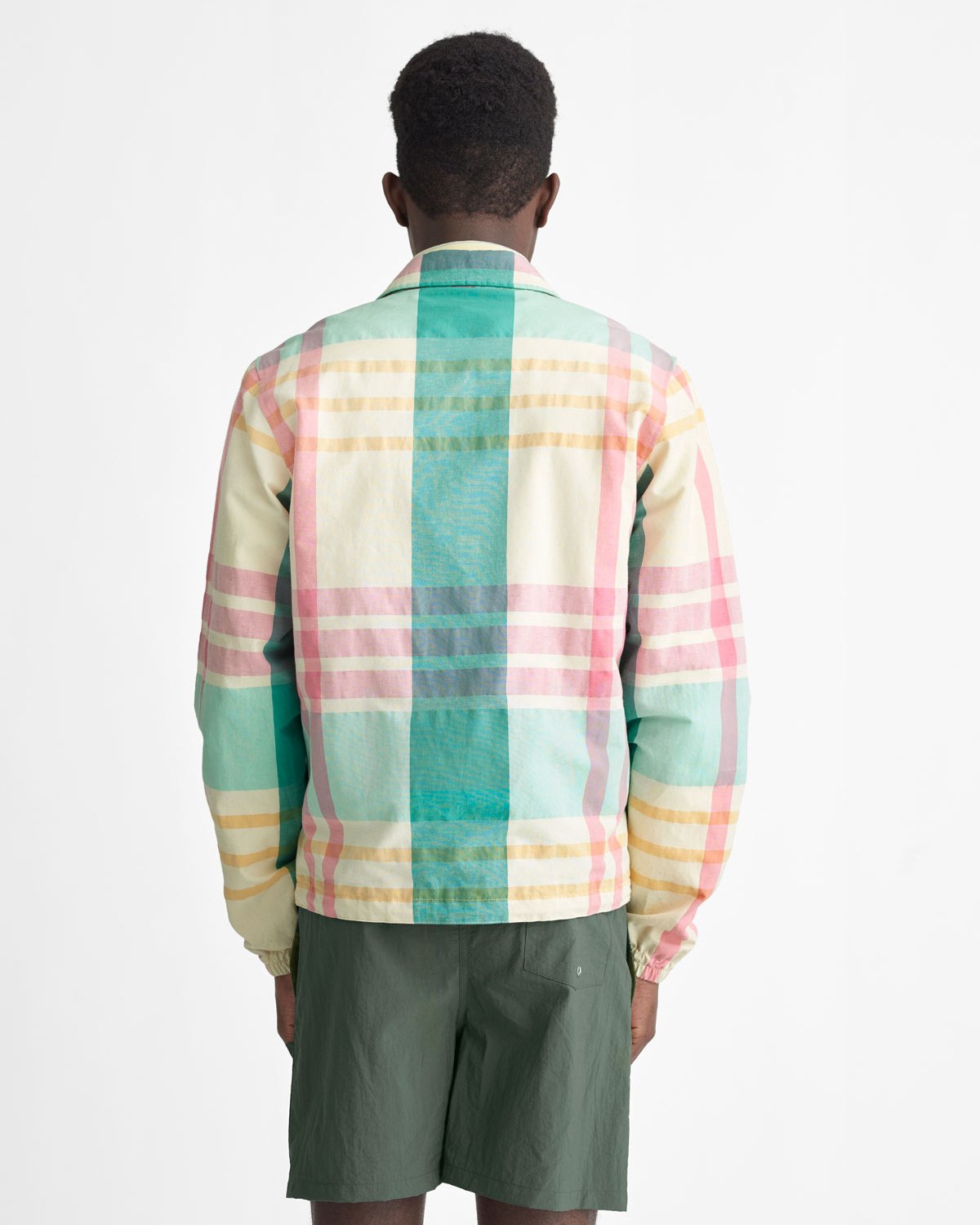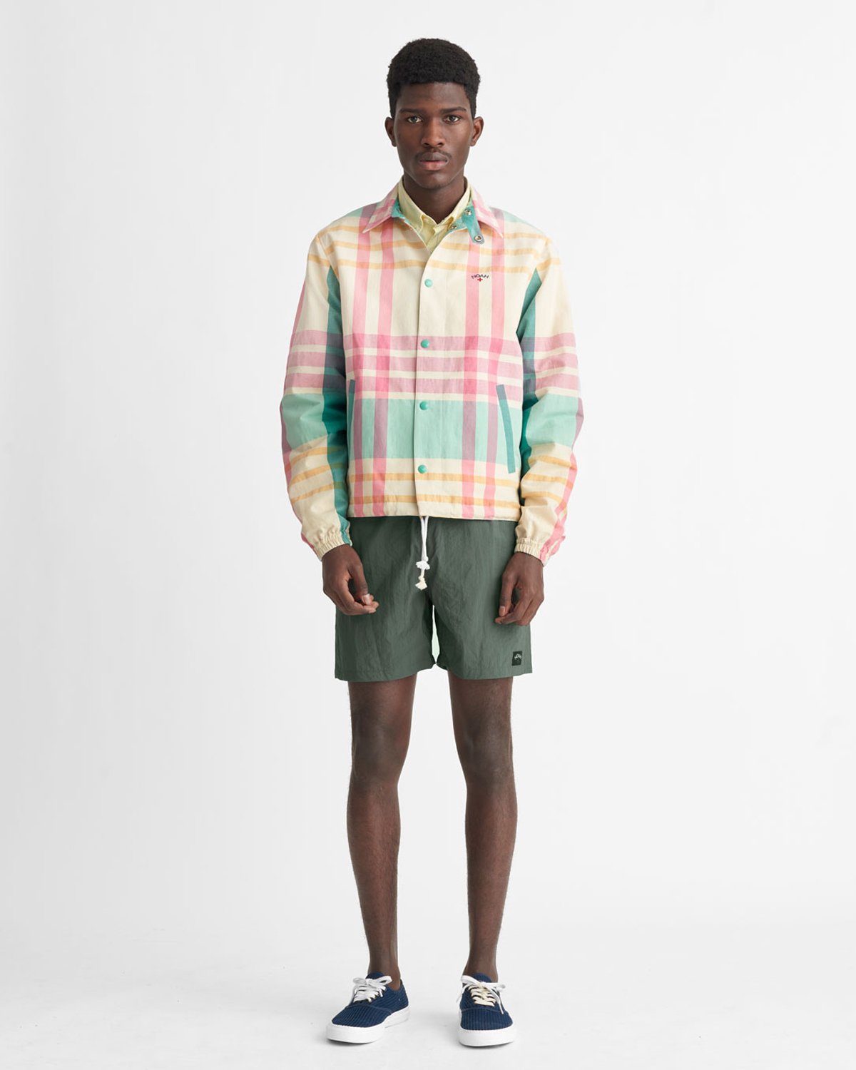 This summery Italian blend of cotton and linen comes from a mill that specializes in making dense but breathable fabrics and incorporating patterns more commonly found in shirting into more substantial materials. This one, which has a light, dry hand and a bit of nubby, irregular texture (thanks to its linen content), was too good not to develop into these custom madras prints.