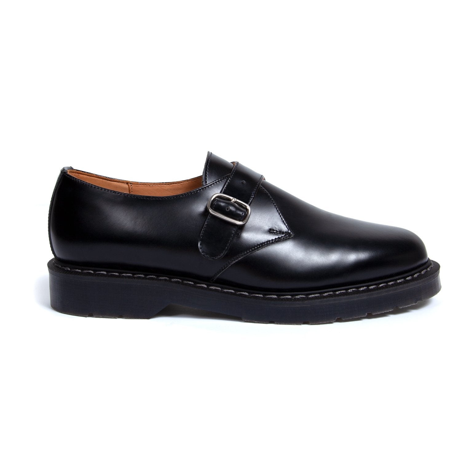 Made in England. 100% leather upper. Goodyear welt with patented Solovair sole technology. Single buckle.