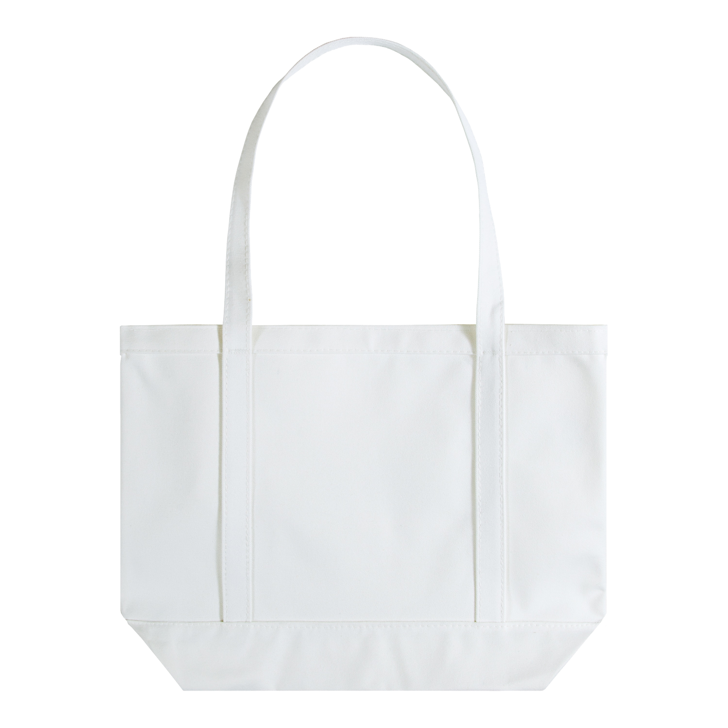 Made in USA. 100% cotton canvas. Printed logo on side.