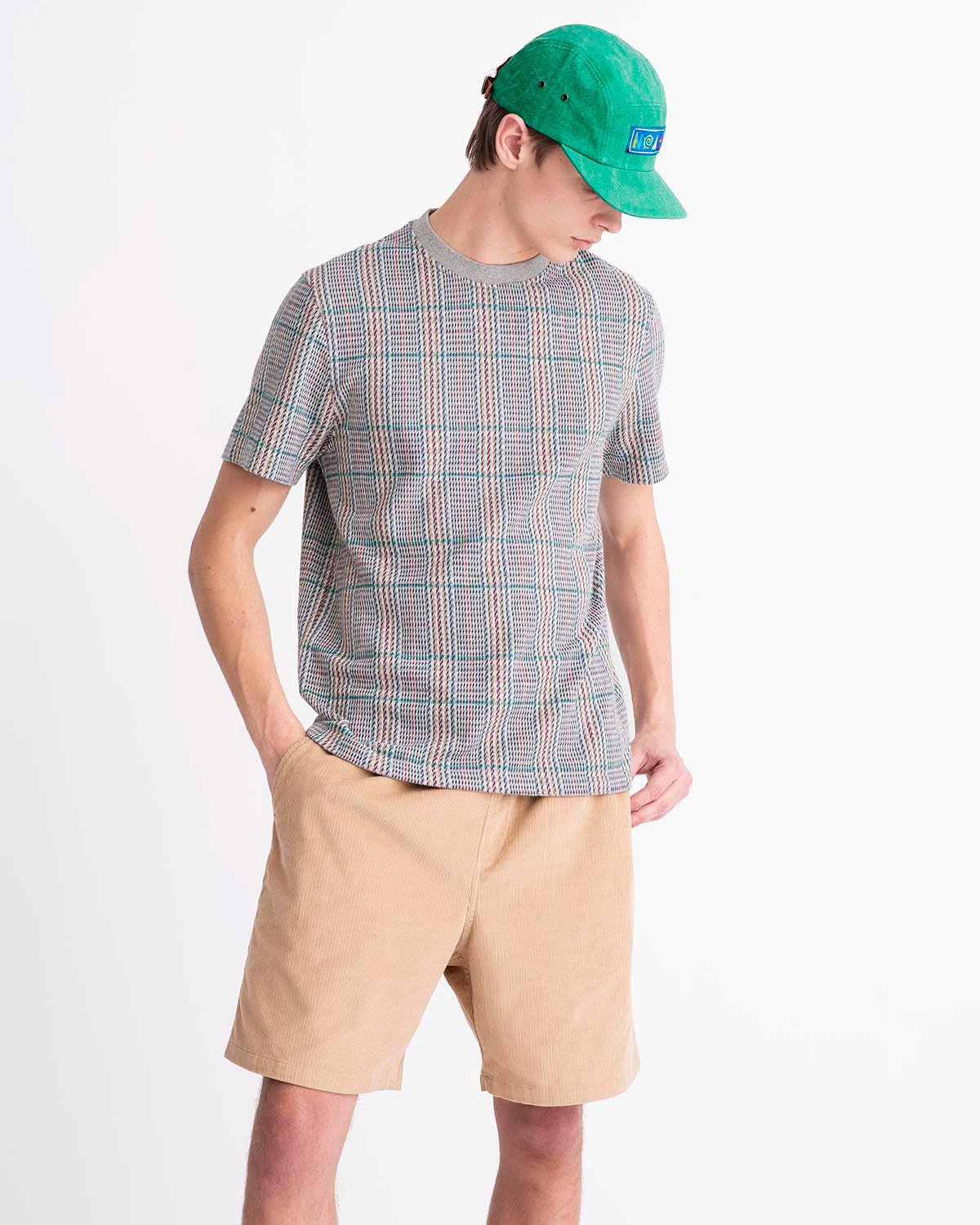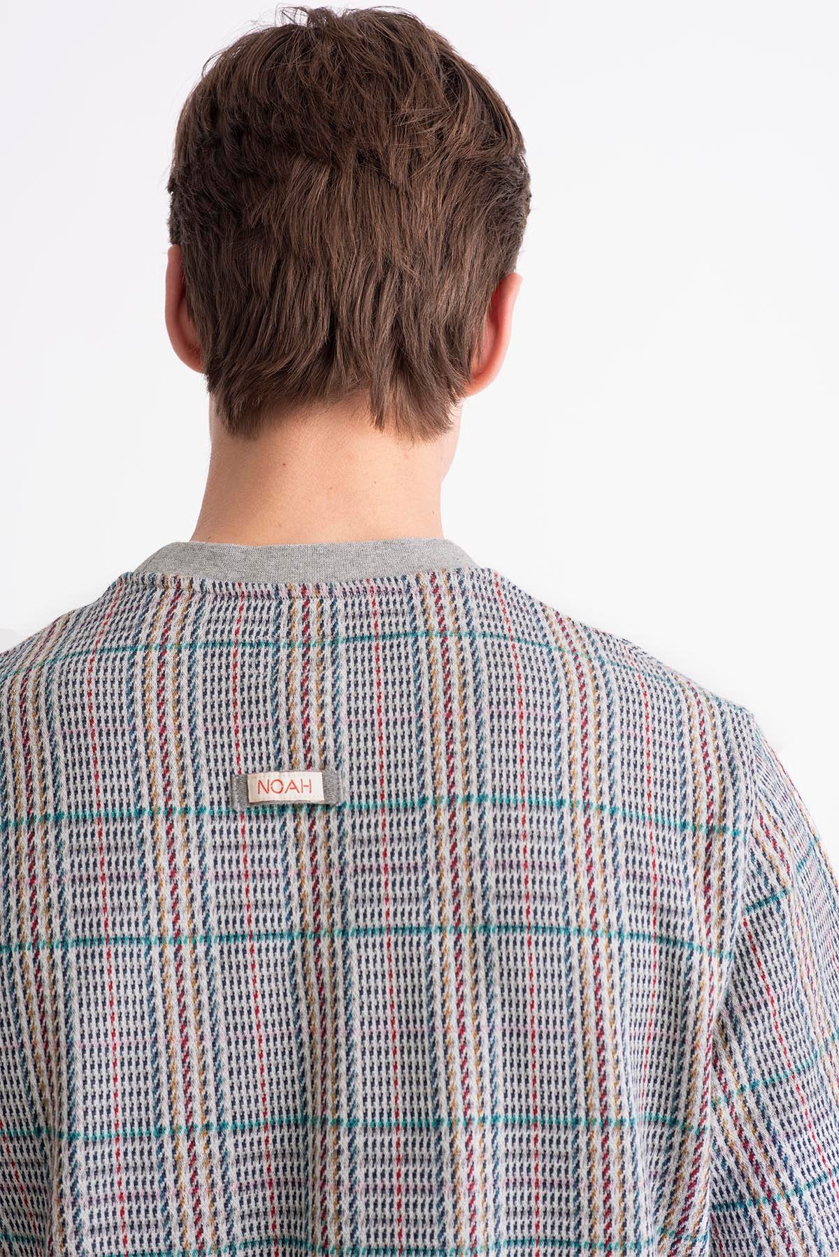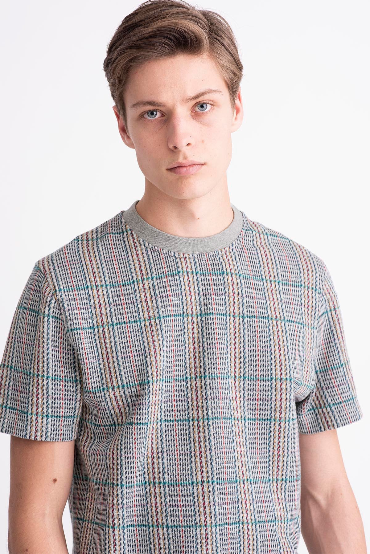 Made in Portugal. 100% cotton jacquard plaid. Woven label on back self fabric locker loop.