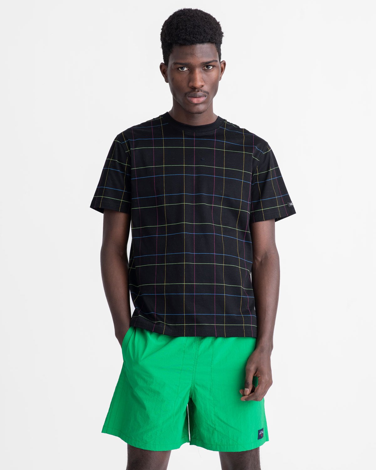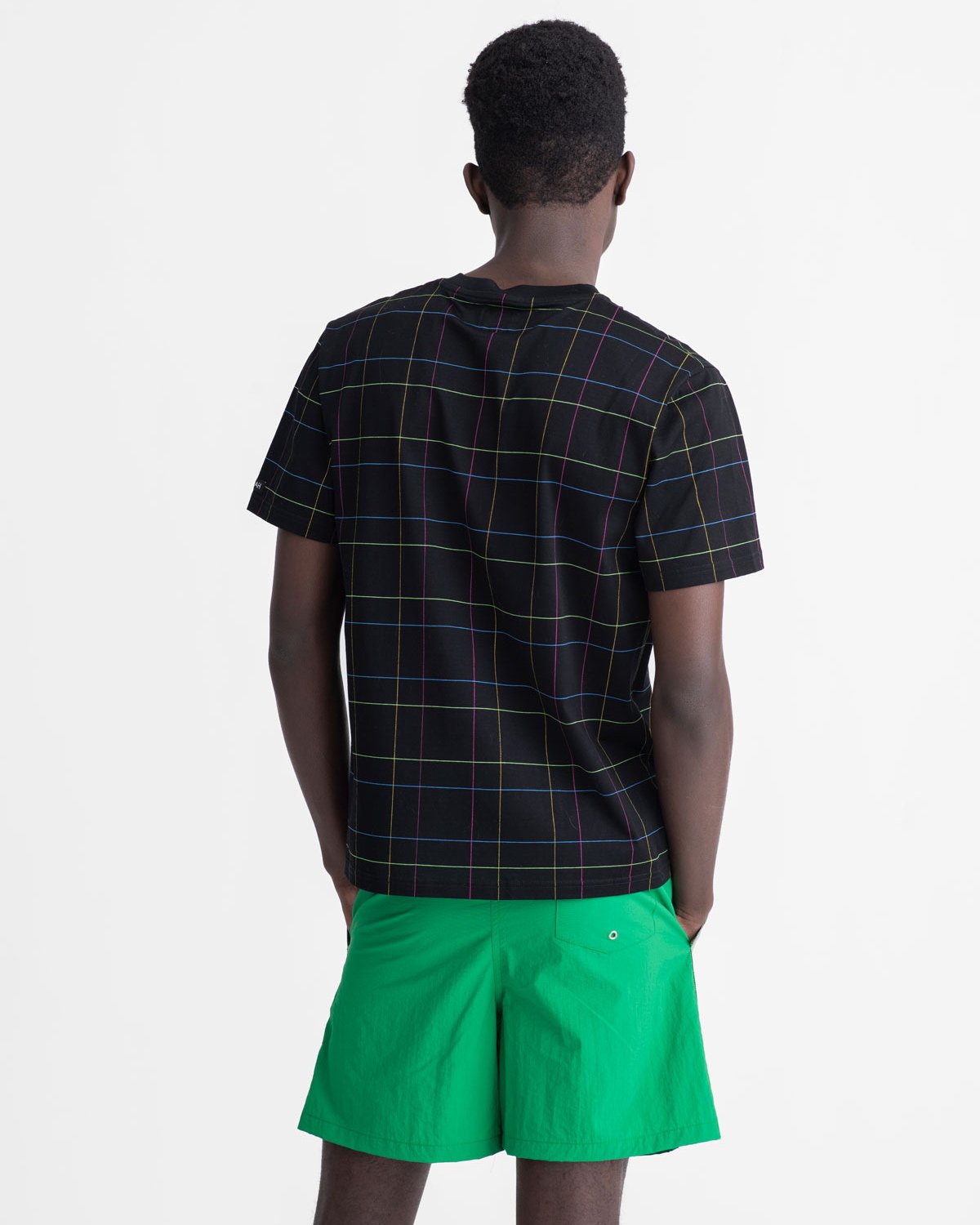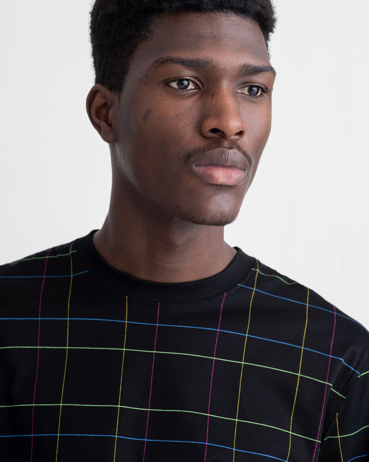 This ultra-lightweight, refined jersey uses two-ply, long-staple, double-mercerized cotton yarns knit on circular machines at a high-tech Italian mill. The jacquard windowpane plaid is crisp and bright, and the fabric has a subtle sheen and silky hand. It's as sophisticated as a t-shirt can get, and so breathable as to be translucent when held up to the light.