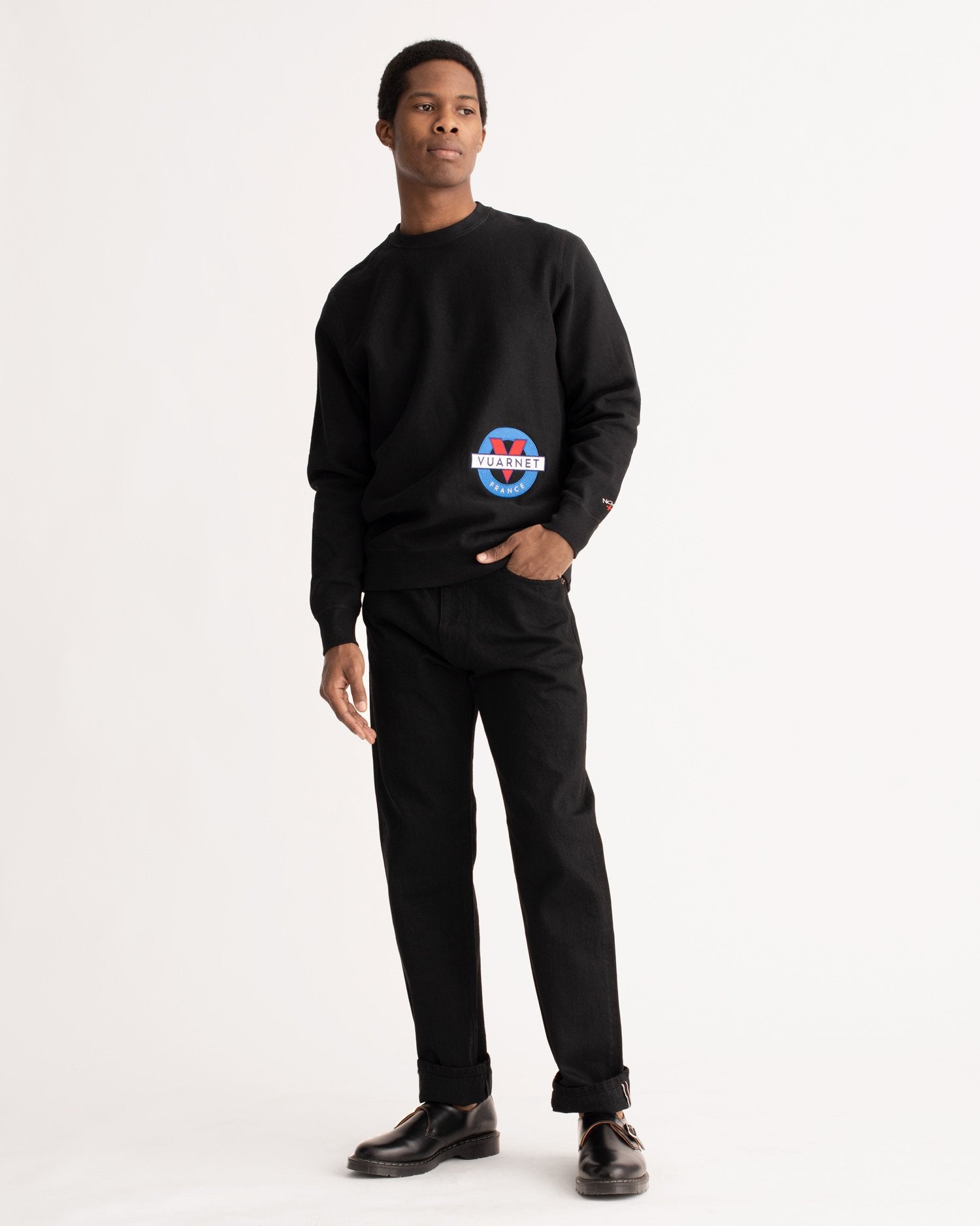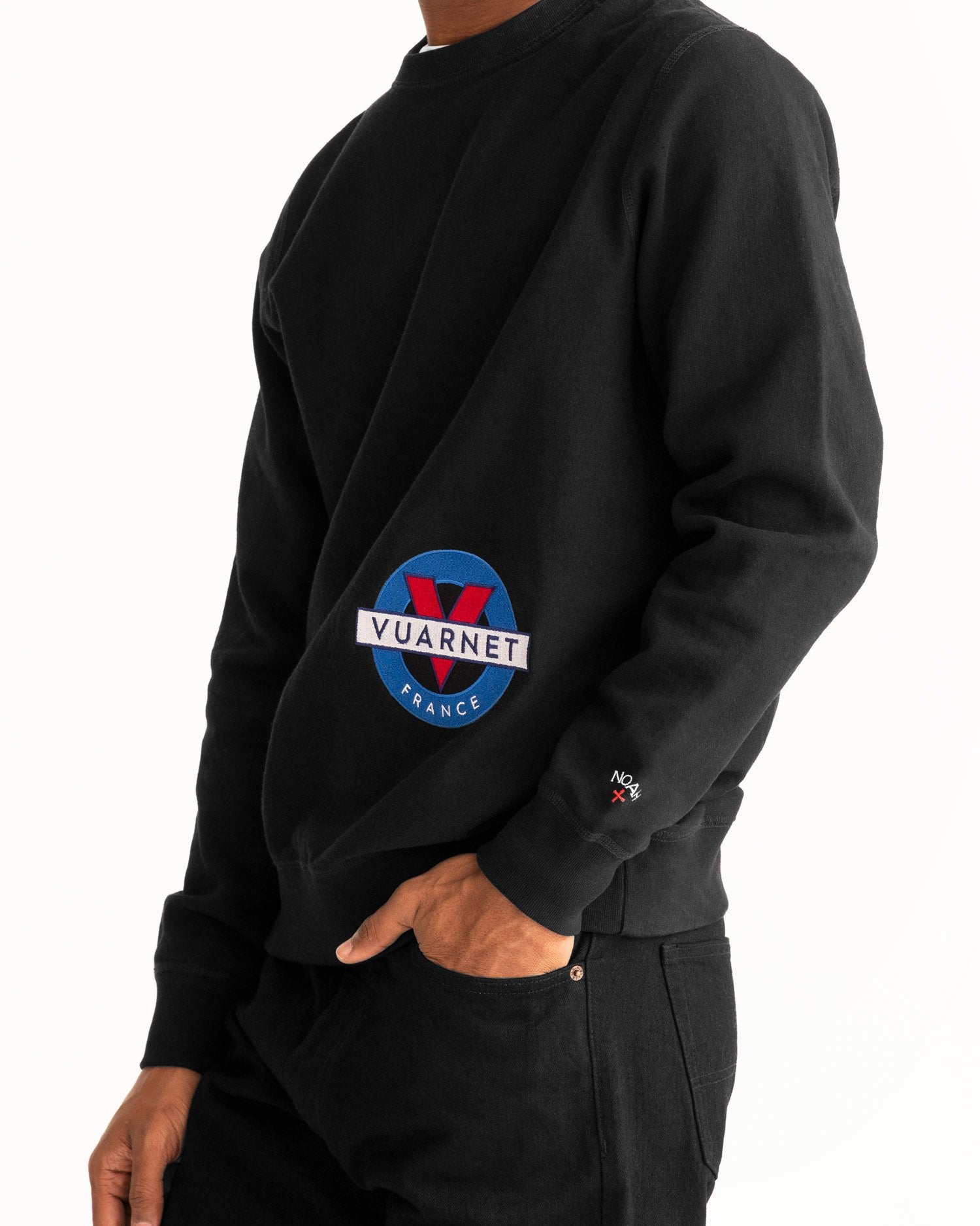 Made in Canada. 100% cotton, 10 oz brushed-back fleece. Embroidered graphic on front. Embroidered logo on wrist.